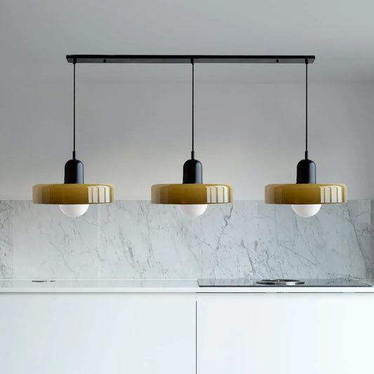 Sonna - 3-köpfige bauhaus-pendelleuchte aus farbigem glas