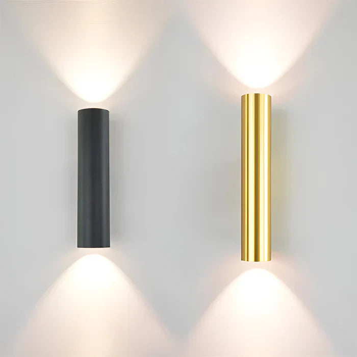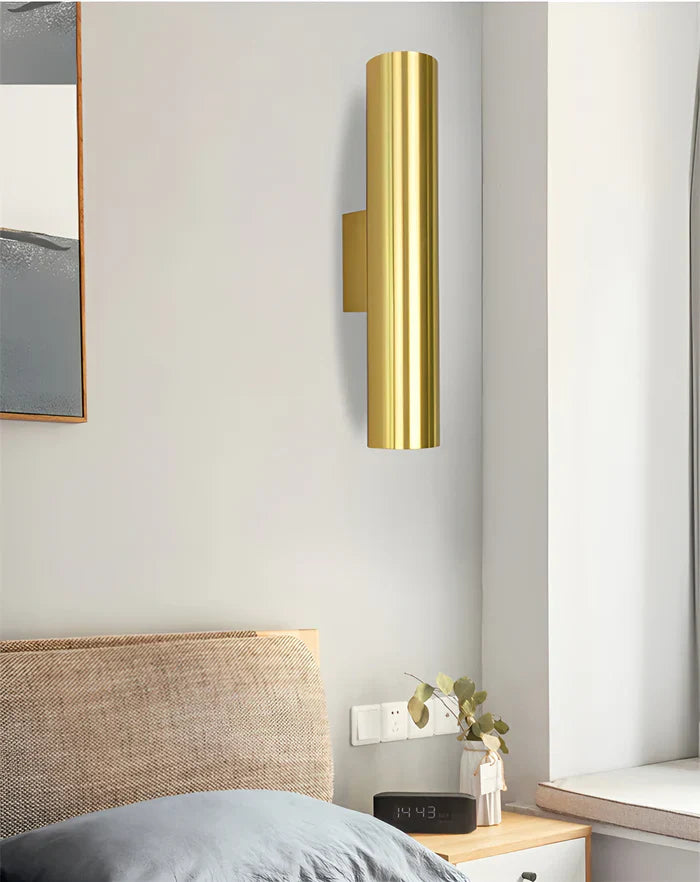 Die zweiköpfige Wandleuchte ist eine elegante, goldene Wandleuchte mit einem stilvollen, zylindrischen Design. Mit zwei Lichtpunkten bietet diese Wandleuchte eine leistungsstarke und funktionelle Beleuchtung für moderne Innenräume. Perfekt für Wohn- und Schlafzimmer, ist diese goldene Wandleuchte ein luxuriöser und eleganter Begleiter in jedem Raum.