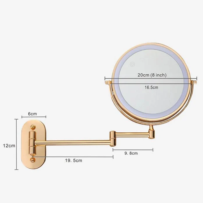 Gold Wiederaufladbarer LED Vergrößerungsspiegel für Makeup und Badezimmer