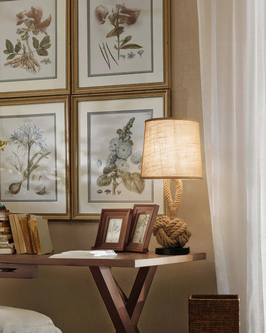 Rustikale hanfseil-tischlampe